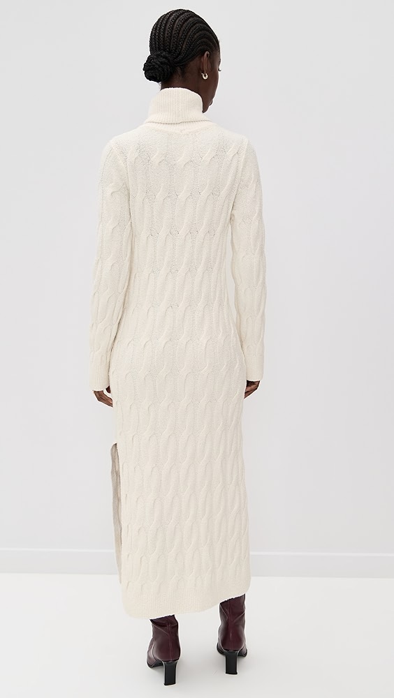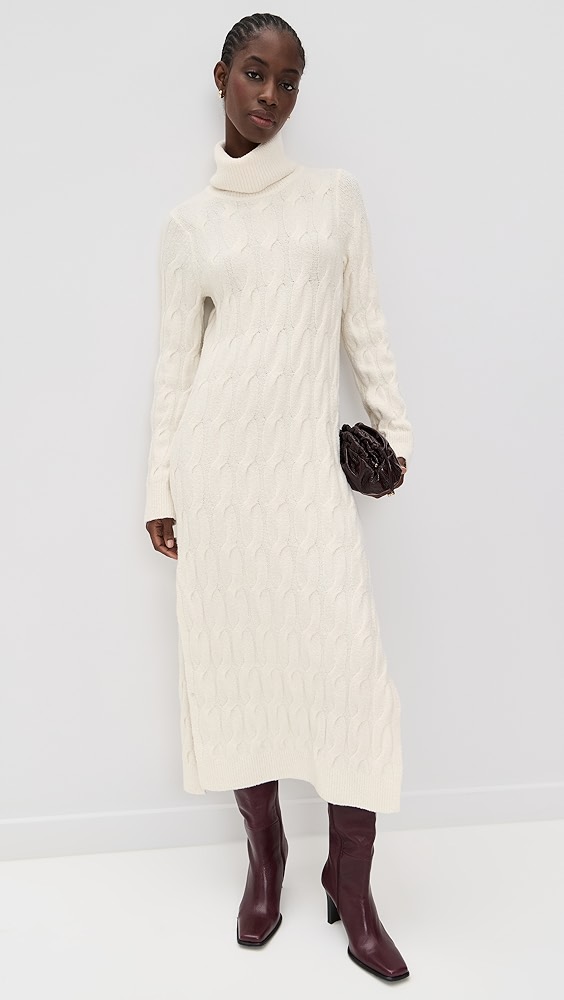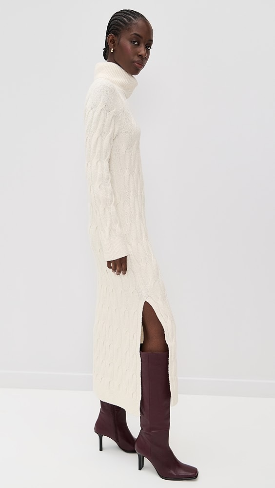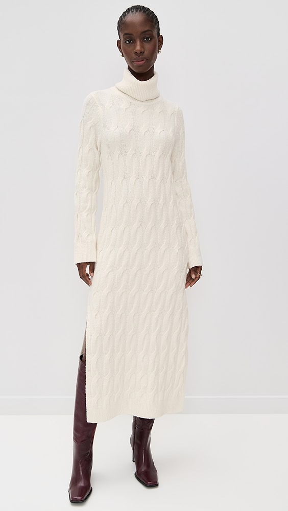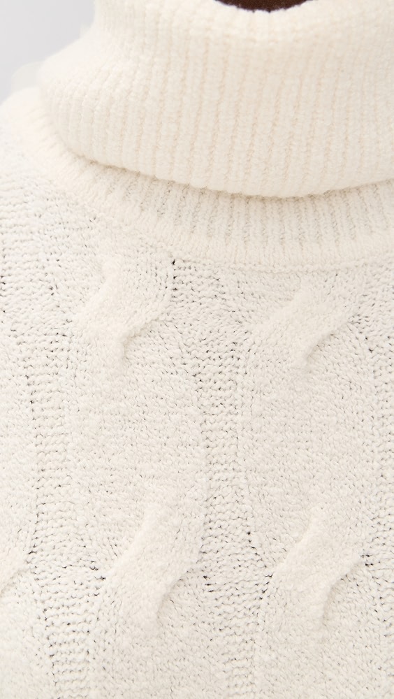 Fabric Stretch: Stretch ranging from Non-Stretch to Super-StretchSuper-Stretch Fabric: Mid-weight cable knit with stretch Ribbed trim and split hem Maxi length Turtleneck Long sleeves Pullover design, no closure Shell: 61% cotton/33% nylon/5% wool/1% elastane Unlined Dry clean Imported, China Style #SPLEN44216